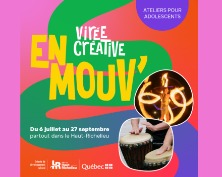 Saint-Jean-sur-Richelieu, le 27 juin 2025 - Au cours de l’été 2025, la tournée EN MOUV’ – Virée créative ajoutera rythme et éclat à 10 événements municipaux à travers le Haut-Richelieu. Des ateliers participatifs, gratuits et animés par des artistes professionnels, viendront bonifier la programmation de ces événements en permettant à un public adolescent d’explorer l’art des poïs ou de vibrer au rythme des percussions.